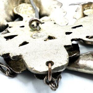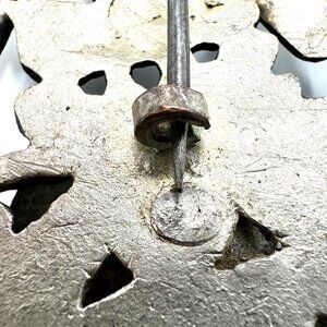 • Features: Hand-fabricated with oxidized/antiqued patina, dimensional construction, intricate filigree details