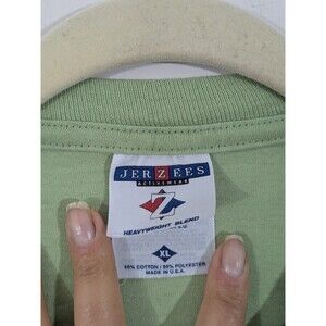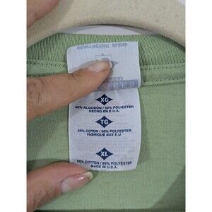 This Vintage Petal Pets Adult Unisex Green Cats Parody T-shirt in size XL features a fun and quirky animal print design with a cat theme. Made from a comfortable blend of polyester and cotton, this short sleeve shirt has a classic crew neckline and a regular fit, making it suitable for both men and women. The graphic is cracked and there is a small mark as seen in the last picture.