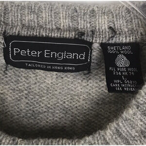 Vintage Peter England Crew Neck Sweater 100% Shetland Wool Gray Triangle Men's Size Large