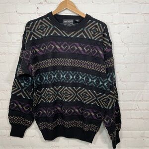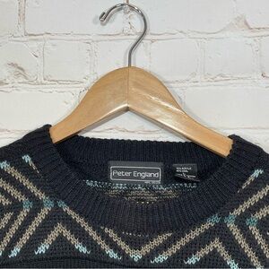 Vintage Peter England Sweater Mens Large Black Aztec Acrylic Wool Pullover