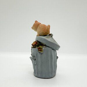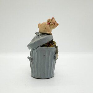 Vintage Peter Fagan sculpted, hand painted, resin cast cat on garbage can. About 3" tall x 1" round. No damage, general wear for age.