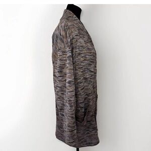 Elevate your wardrobe with this stunning vintage Peter Lai cardigan sweater. Made with acrylic material and designed with a marled pattern, this sweater features a silver metallic and brown color combination that adds a touch of bohemian and artsy vibe to your outfit. The long sleeves and relaxed fit make it perfect for any occasion, whether it's for travel, party, casual wear, workwear, or business attire.