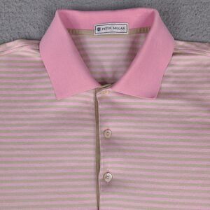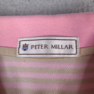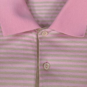 Vintage Peter Millar Polo Shirt Mens Medium Pink Brown Striped Short Sleeve Golf