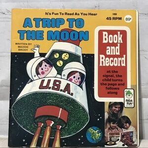 A Trip To The Moon Book And Record Peter Pan Records 45 RPM 1956. Untested. Please see pictures for more detail.
