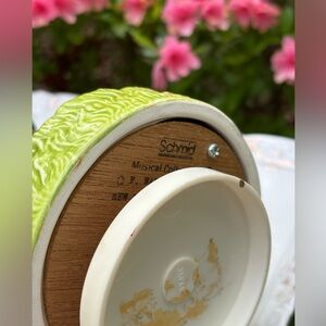 Add a playful touch to your decor with this whimsical rabbit musical featuring a vibrant green hat and charming pink details.
