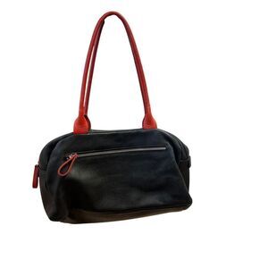 Vintage Peter Kent Buenos Aires Purse Black and Red Leather Baguette / Mini Bowling Bag / Top Handle Shoulder Bag