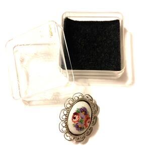 Vintage Petit Point Floral Pin/Brooch Handmade Original Box NIB