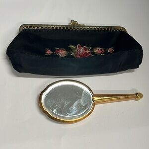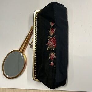 Vintage Petit Point Kisslock Snap Clutch w/Hand Mirror
