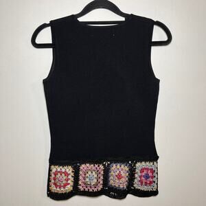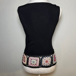 Vintage Petite Crochet Tank Top Vest Black Small Festival Cottage Boho Hippie