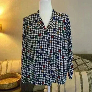 Vintage Petite Impressions M 80s 90s Houndstooth Abstract Artsy Blazer Work Top
