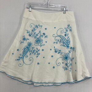 Vintage Petite Nine & Company size 14P Blue White Linen Blend Embroidered Skirt