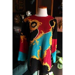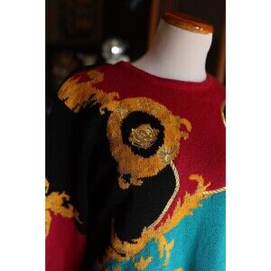 Vintage Petite Sophisticate 80s Equestrian Maximalist Granny Sweater Small
