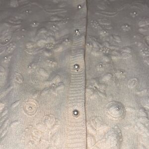 Vintage Petite Sophisticate Ivory Angora Wool Beaded Pearl Cardigan Sweater 8P
