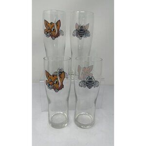 Vintage Petron Tequila Fox Cigar Glasses Set Of 4 - 7" Clear Glass Barware