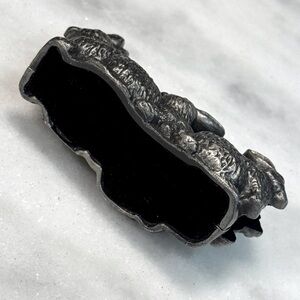 Vintage Pewter 3 Bunny Business Card Holder 3.5" x 1.4" and 1.6" tall