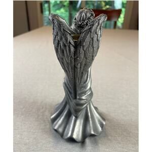 Vintage Pewter Angel Candle Stick Holder Ornate Holiday Christmas Home Decor