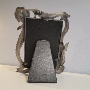 Vintage Pewter Angel Photo Frame with Flowers