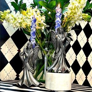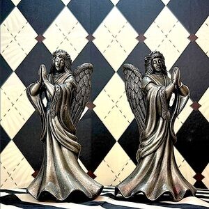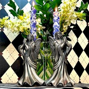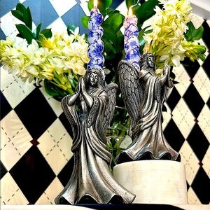 Vintage Pewter Angels Candle Holder Set – Double as Bookends – Unique & Gorgeous