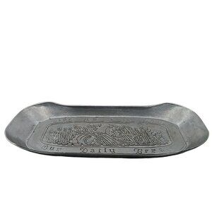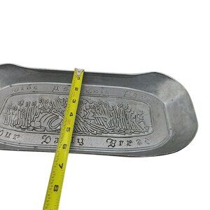 This vintage pewter bread tray, adorned with the phrase "Give Us This Day Our Daily Bread," brings a touch of old-world charm to your dining table.