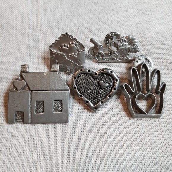 Vintage Pewter Brooch Pin Lot LCD Ann Clarke for Teacher Cottage Core