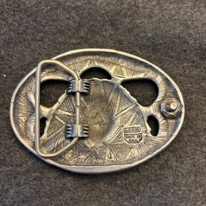 Vintage Pewter Chief Buckle w/ inlaid coral & Turquoise-Estate Rare