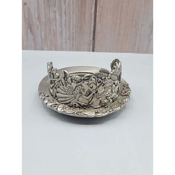 Vintage Pewter Fairy & Dragonfly Decorative Candleholder By PartyLite. Has some scuffs on bottom.