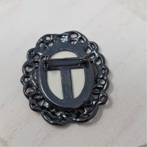 Vintage Pewter Finish Pin Brooch Photo Frame