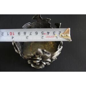 Add elegant charm to your space with this vintage-style pewter candle holder featuring beautifully sculpted flowers and leaves. Measuring 3" tall and 4" wide, this ornate piece serves as a stunning accent for mantels, centerpieces, or gift displays. The antiqued silver-tone finish and intricate botanical detailing evoke a romantic Victorian aesthetic, ideal for cottagecore, shabby chic, or traditional interiors. Perfect as a collectible or functional décor, this solid metal candle holder blends artistry and utility. Fits most standard votive or pillar candles. Condition: gently used with light wear consistent with age.