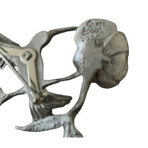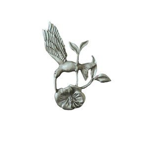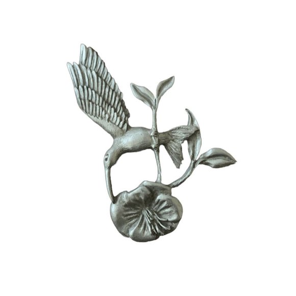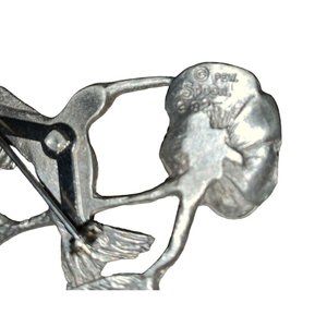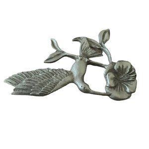 Vintage Pewter Hummingbird Flower Brooch Pin Signed Spoon 3825 Figural Bird 3”