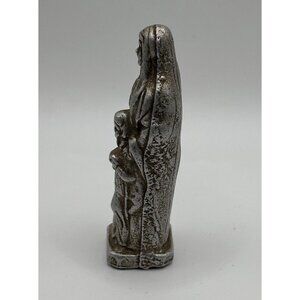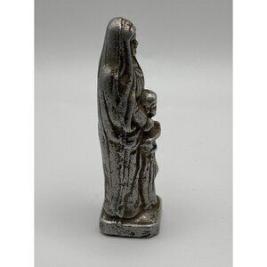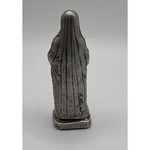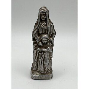 This vintage pewter metal statue figure of Saint Anne is a beautiful addition to any collection of religious collectibles. Crafted with intricate detail, this figure depicts the Catholic saint in all her glory. Measuring at 3 inches in height, this figure is perfect for display on a shelf or desk.