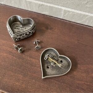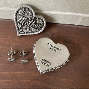 Vintage Pewter Ms Dee Trinket Box, Pin, Earrings For Mother