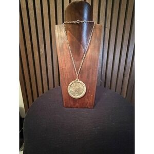 Vintage Pewter Pendant/Necklace Elk/Deer - Metzke 1974 - 2.25" dia/28" chain