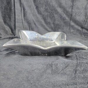 Vintage Pewter Petal Shaped Square Bowl Stable Base Decoration Centerpiece