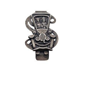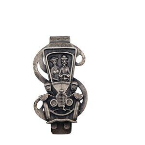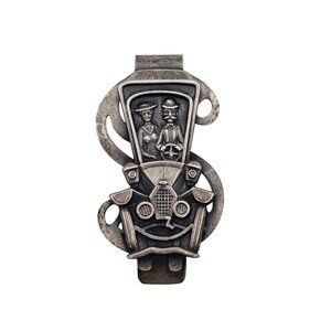 Vintage Pewter Silver Couple in Old Automobile Figural Money Clip Accessory