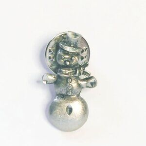 Vintage Pewter Snowman Lapel Pin. Condition is preowned. This charming vintage snowman lapel pin, crafted from pewter, adds a nostalgic touch to any outfit. Ideal for holiday or winter-themed attire. (FC03)