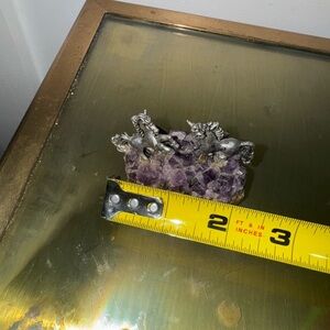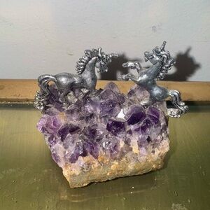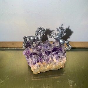Vintage Pewter Unicorn Figurine with Amethyst Crystal Geode