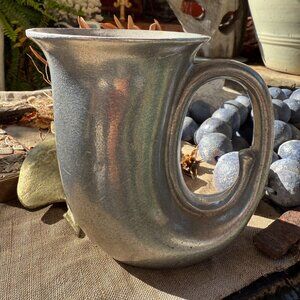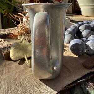 Vintage pewter antique style French trumpet or horn stein. It was made in the USA, Columbia PA by Wilton RWP. Stands 5" tall. Has external stamped hallmarks just as the 19th Century ones do. I believe that this was made in the 1980s.