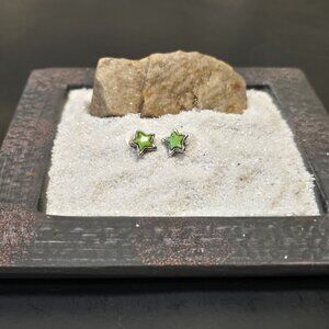 Vintage Peyote Bird 925 Silver and Green Turqouise Star Earrings