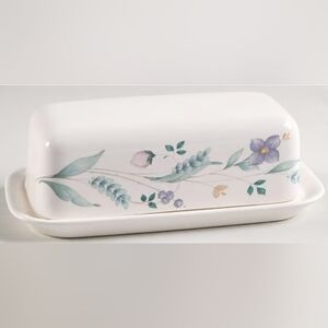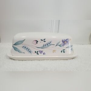 Vintage Pfaltzgraff April Pattern Covered Floral Butter Dish Teal & Purple - 7"W