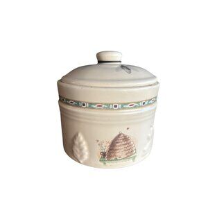 Vintage Pfaltzgraff Tea Jar With Lid Honey Beehive & Watering Can Design Ceramic