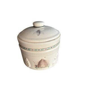 Vintage Pfaltzgraff Tea Jar With Lid Honey Beehive & Watering Can Design Ceramic