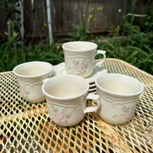 Vintage Pfaltzgraff Tea Rose Cups and Saucers Set of 4 (8 pieces)