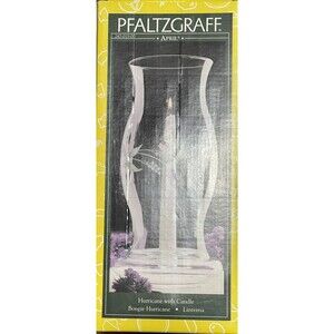 Pfaltzgraff "Winterberry" Glass Hurricane Shade and Taper Candle Holder for Christmas. Does include candle. Lamp is approximately 11 1/2" tall on the base and the base is 5 1/2" wide. Item is never used- no cracks or chips.