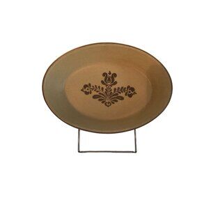 This is a vintage Pfaltzgraff stoneware oval serving dish in the classic Folk Art / Yorktowne brown tulip motif, stamped #240 on the base. Measuring approximately 9 inches long, this dish features a warm tan glaze with rich brown detailing and is perfect for vegetables, side dishes, or as a decorative piece. Its crackle glaze adds to the authentic vintage charm. Made in the USA, this durable stoneware piece represents the timeless quality Pfaltzgraff is known for.