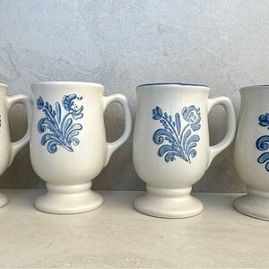 Vintage Pfaltzgraff Yorktowne Pattern Pedestal Coffee Mugs Cups EUC Set Of 4