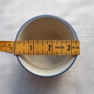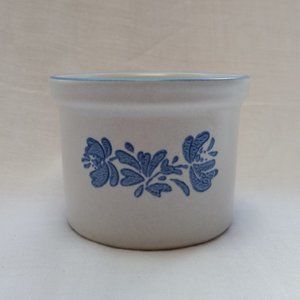 White stoneware with a blue floral design, this pattern was produced from 1967 to 2007. This cheese crock can also be used as a dip bowl, pudding bowl, or a lidless mini canister. You could even use it for a vase for tiny succulents. If you do that, please send me a picture!