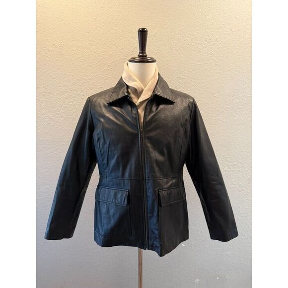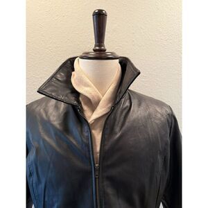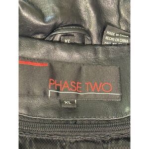 Vintage Phase Two Leather Jacket Mens Extra Large Black Pockets Full Zip Lining