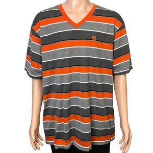Vintage Phat Farm Men's 3XL Short Sleeve Orange Gray Stripe Polo Shirt 3X XXL