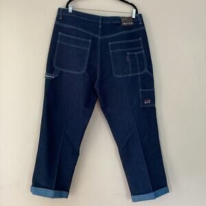 Vintage Phat Farm Y2K Blue Denim Baggy Cuffed Carpenter Jeans Dark Wash MEN'S 40