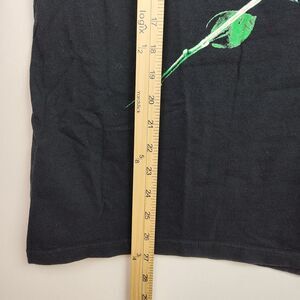The product is a vintage Phantom of the Opera t-shirt in size small, featuring a black color with a graphic print of the character. Made from cotton jersey fabric, this regular fit t-shirt has short sleeves and a crew neck neckline. Machine washable and made by the brand Hanes, it is a must-have for fans of the music-themed shirt. Ideal for women looking to add a unique and nostalgic piece to their wardrobe.